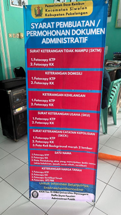 Sebagai bentuk nyata, standing banner berisi alur pengurusan dipasang di balai desa dan titik strategis lainnya. Infografis digital juga dibagikan melalui media sosial dan grup WhatsApp warga sebagai bagian dari digitalisasi informasi publik.